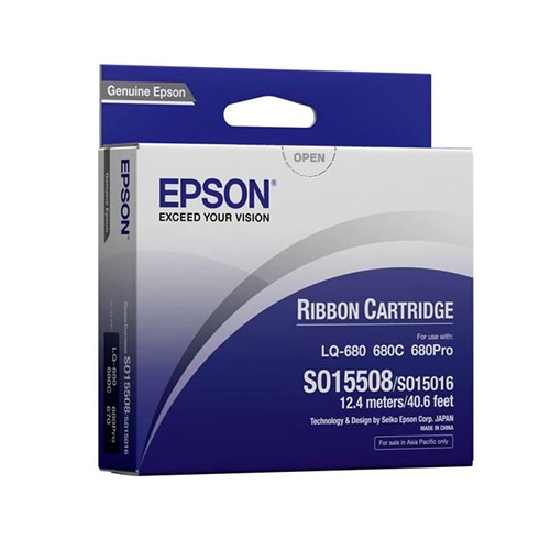 Epson LQ-680 original ribbon cartridge for Epson dot matrix printers. An exact fitting ribbon cassette enables easy and user-friendly replacement and does not jump out during printing. Perfect harmonization between printer mechanism and ribbon transport means uniform distribution of color which, in turn, ensures a clean and pleasing appearance and also makes ribbon-tightening a thing of the past